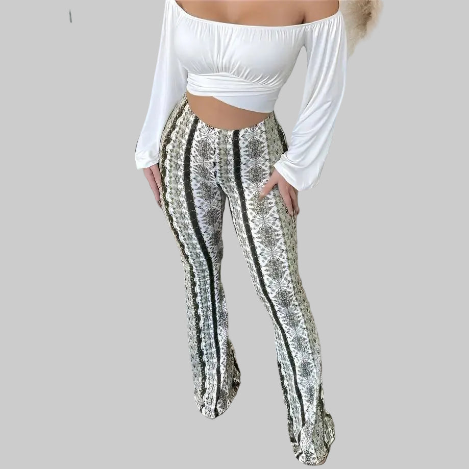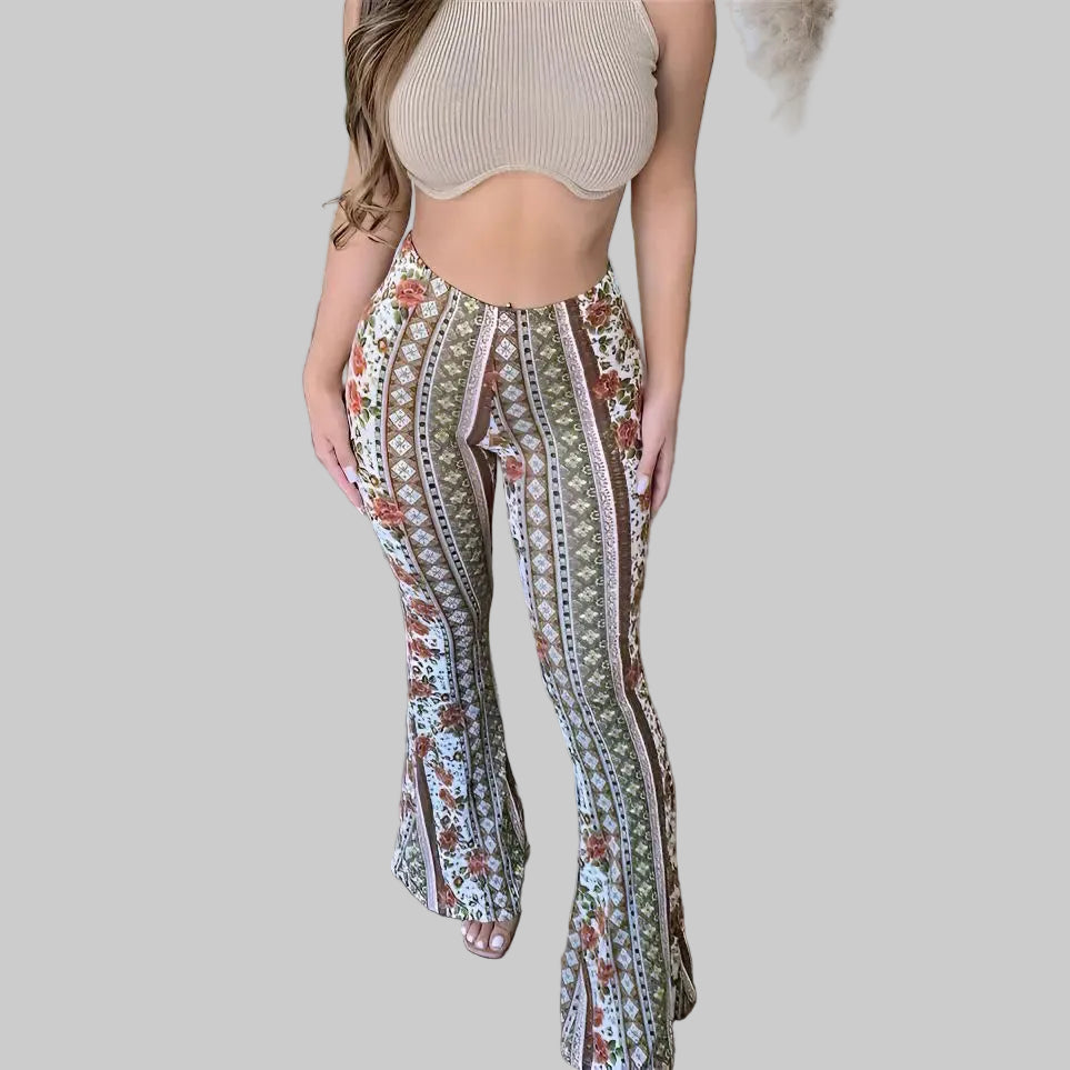 Carlyn Flared Byxor – Bekväm med Stilfullt Mönster