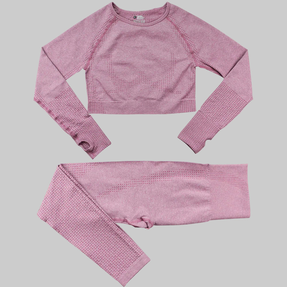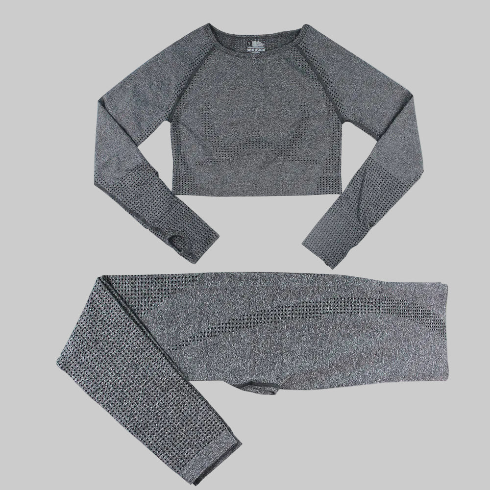 Upptäck Deffeny, ett sömlöst träningsset designat för kvinnor som vill kombinera stil, komfort och funktion i varje rörelse. Setet består av en high-waist legging och en långärmad crop top som tillsammans skapar en slank, stödjande silhuett – perfekt för både intensiva workouts och avslappnade athleisure-looks.