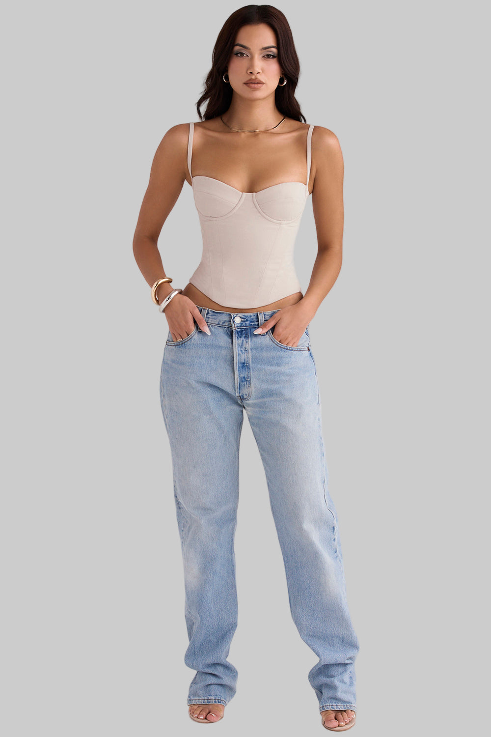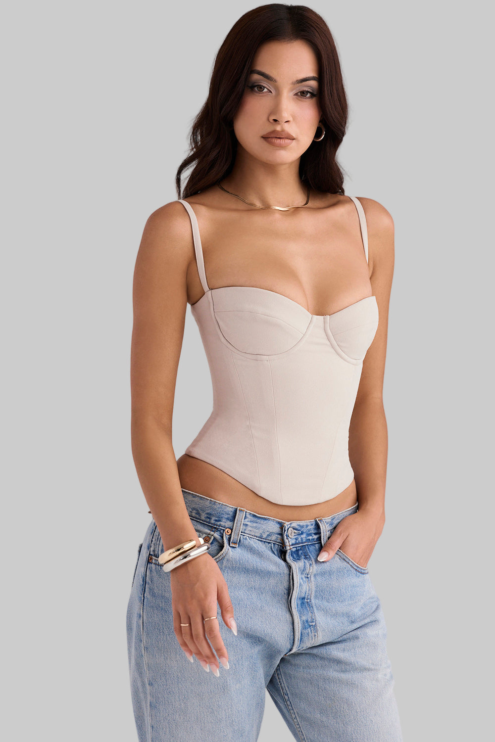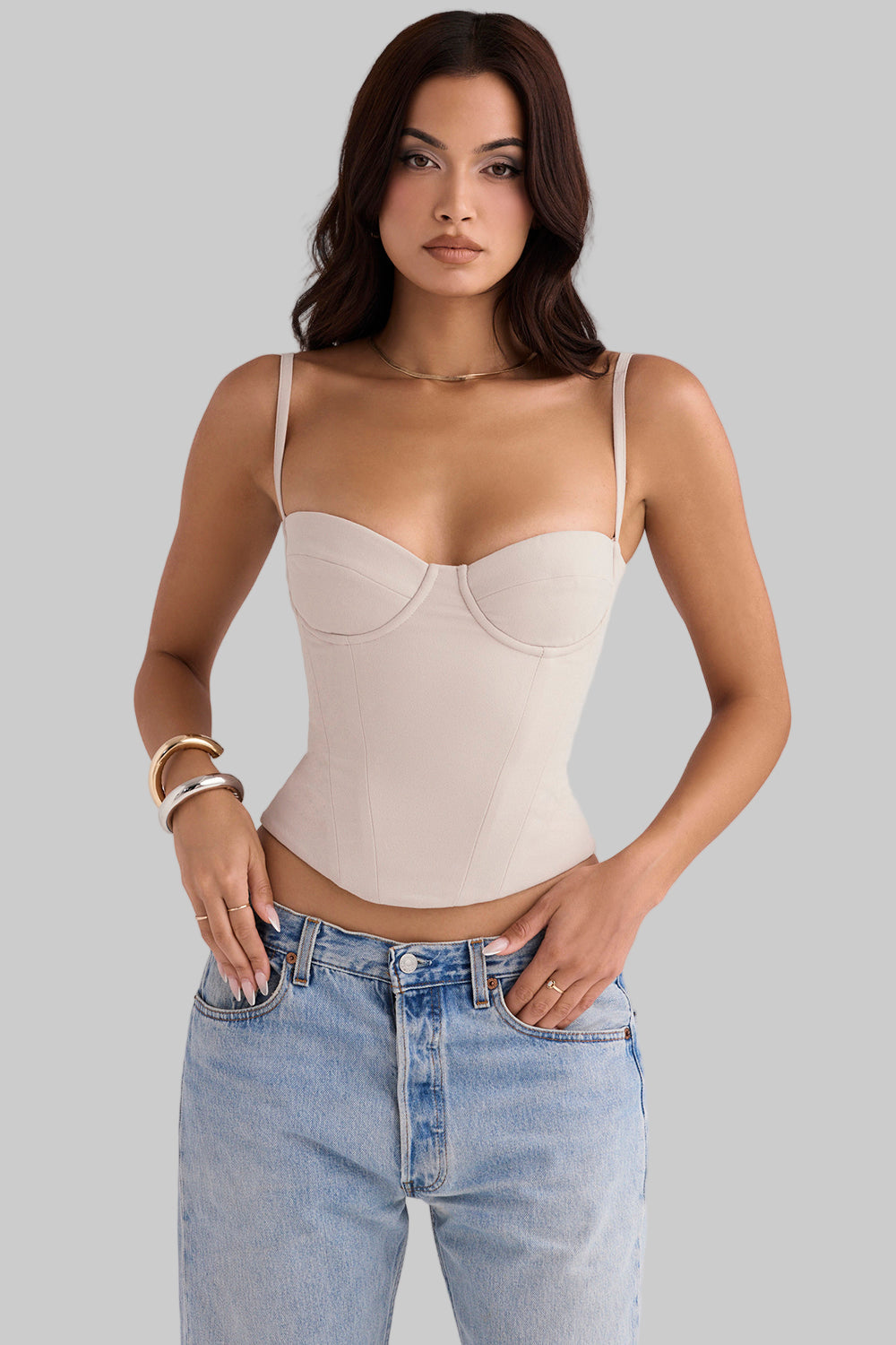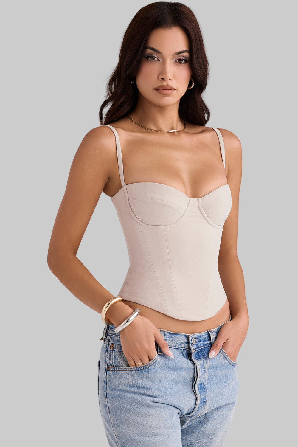 Omfamna en ren och sofistikerad stil med Mylana Top, ett mångsidigt plagg som passar perfekt för både vardag och mer uppklädda tillfällen. Den kroppsnära designen med subtila bygelinspirerade detaljer skapar en smickrande siluett och tillför en tidlös elegans som lyfter varje outfit.