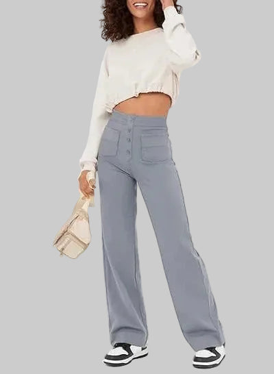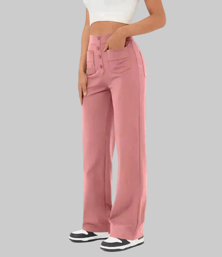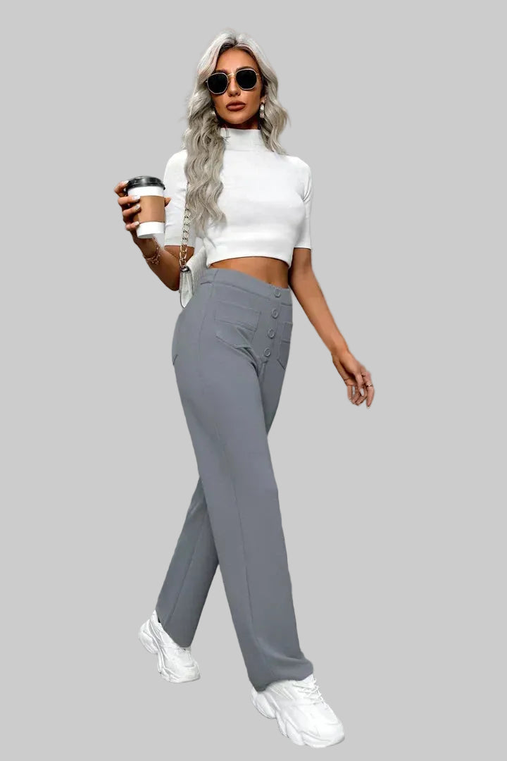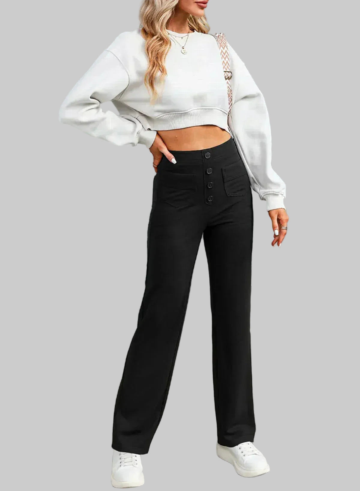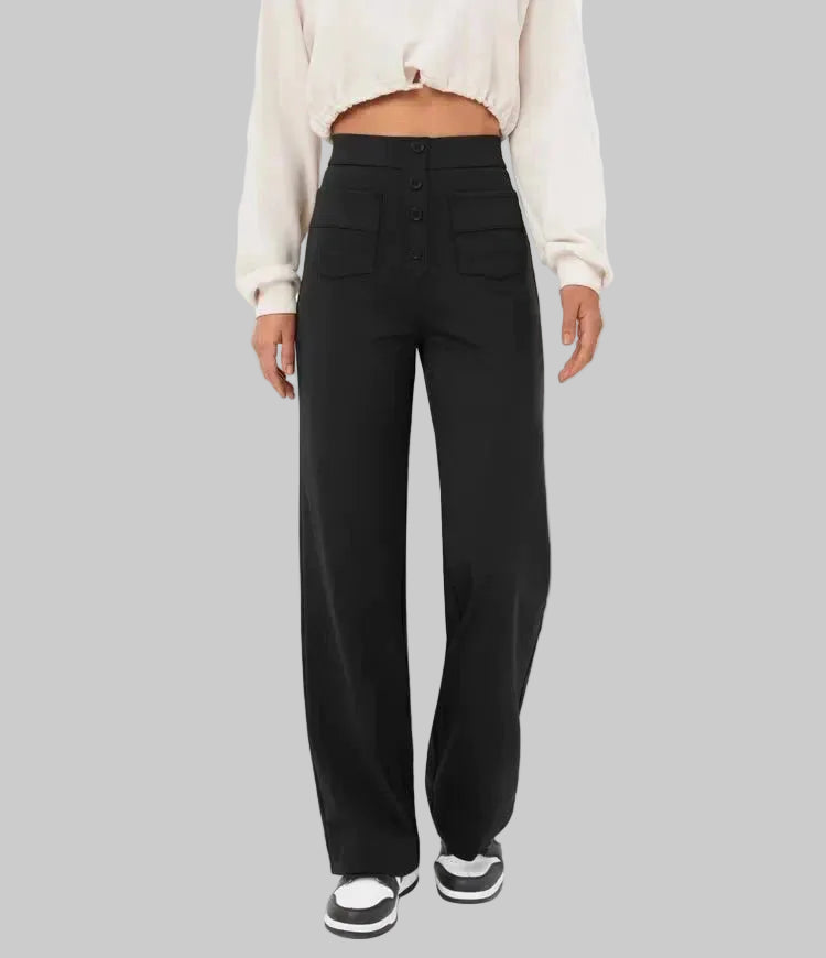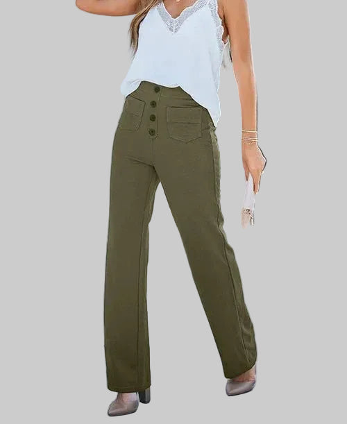 Veryana | Högmidjade Stretchiga Dambyxor Med Knappar Framtill